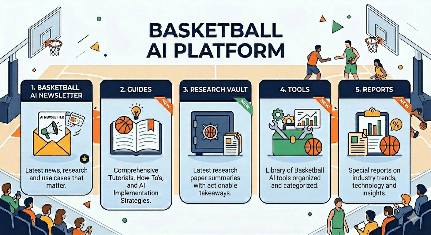 We are launching four new pillars of Basketball AI: the Research Summaries Vault, a dedicated Guides page, a Tools hub and Special Industry Reports. These features are designed to help you transform complex AI developments into actionable basketball strategies.